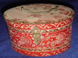 | Description / विवरण | Miniature wooden container with lid, joined at one end and has buckle to lock it at other end. It has a handle to hold it. |