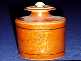 | Description / विवरण | A wooden tiny bottle painted with lacquer paints. On the top is a small ivory fitting. |