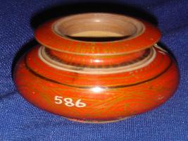 | Description / विवरण | Miniature wooden pot with narrow neck and broad mouth and flat rim and flat base, it is having floral design on body painted with lacquered paint. |