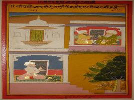 | Description / विवरण | Miniature painting based on Mullah-do-Piyaja depicting that persons who has god over him is very lucky. |