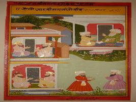 | Description / विवरण | Miniature painting based on Mullah-do-Piyaja. It depicts on the upper left Mullah-do-Piyaja is talking to Akbar about good men and says that good men are friend of all. |