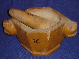 | Description / विवरण | Mortar and pestle, mortar is in the shape of a tortoise, while the pestle is plain and of conical shape. |