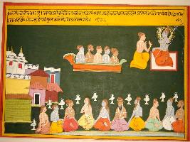 | Description / विवरण | Miniature painting based on Kashi khand depicting sages doing penance for Shiv at lower level. They are shown flying on yaan toward Shivlok, finally they reached Shivlok one of them is shown sitting in front of Shiv. |