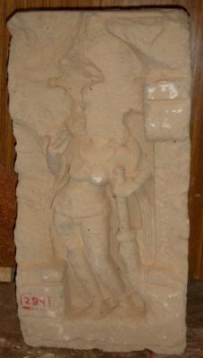 | Description / विवरण | Sculptured architectural fragment of a female chauri bearer in standing position. The face is chopped off. She is holding chauri in left hand. |