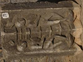 | Description / विवरण | Sculptured architectural fragment depicting two male dancers, divided by a pillar. The right leg of one dancer in left side is slightly damaged. They are adorned with armlet, and drapery. The fragment is mutilated. |