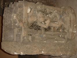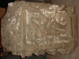 | Description / विवरण | Sculptured architectural fragment depicting one female dancer in dancing posture. Her left hand is on the chest, right side of the figure there is a standing male figure. On the other side a female figure is depicted holding a baby with left hand the left leg is missing. |