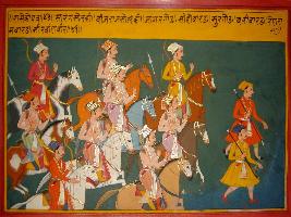 | Description / विवरण | Miniature painting based on Prithviraj Raso depicting the marching of Saran Solanki. Bijraj Solanki, Jagar Gaur, Sihobarar, Sur Gaur, Bali-Barad and other chiefs. |
