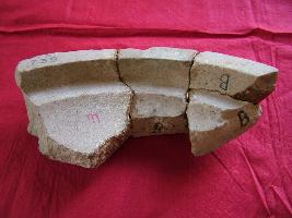 | Description / विवरण | It is a fragment piece of the conopy of the Asokan Pillar, situated at Bijak Kee Pahadi. It is the outer edge of the canopy. It has got Mauryan Polish. |
