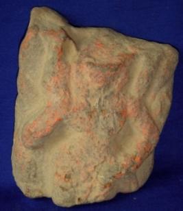 | Description / विवरण | Four handed female deity. The head and body below thighs are missing. The figure is mutilated and traces of vermillion is seen on the whole body. |