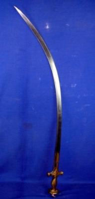 | Description / विवरण | Sword having curved single edged blade with a Alamgiri hilt where golden koft works are seen. The colour of the hilt is partly flaking. |