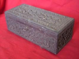 | Description / विवरण | It is a glove box carved out of shisham wood. It has rhythmic floral pattern on the borders. In the centre two levels of carving one above the other l. All the four sides has interwoven floral pattern. |