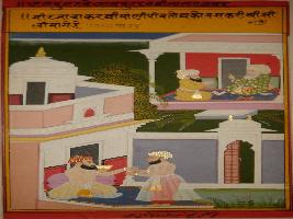 | Description / विवरण | Miniature painting based on Mullah-do-Piyaja. It depicts Mirza taking water from servant and making fun of him. |