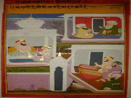 | Description / विवरण | Mullah and Akbar and Mullah says that the rich man always try to prove his richness. The painting depicts three man who are playing musical instrument for reflect the them. |