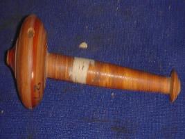 | Description / विवरण | Perfume sprayer, having long narrow neck, globular bottom with hole at side. It is made of wood and of brown and red colours. |