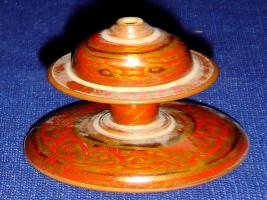 | Description / विवरण | Wooden chessman-Knight white with dome shaped top on flat and circular base. It has been decorated with designs in scarlet, golden and black lacquer paint. |
