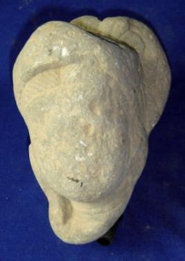 | Description / विवरण | Female head having an elaborate bun. Her face is completely mutilated so facial features are not clear. |