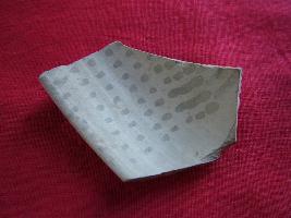 | Description / विवरण | It is a painted gray ware potsherd. It is fine fabric and wheel made potsherd. Both sides are painted in black colour. The painting patterns are dots and lines. It has a featurless rim of a bowl. It gives metalic sound when struck. |