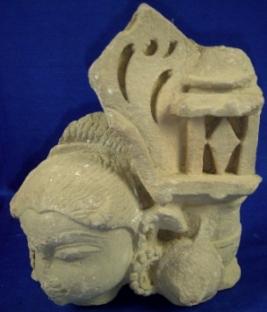 | Description / विवरण | Sculptured architectural fragment depicting head of a female wearing round earrings. Rest of the body is missing. |