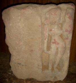 | Description / विवरण | Sculptured architectural fragment depicting a female in standing position, right hand is in Kartavya lambit pose and with left hand she is holding a ghat. |