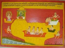 | Description / विवरण | Miniature painting based on Mahabharat - Vana parva depicting Dhaumya Rishi says Yudhisthir that on east Meru mountain exists where Brahma lives. He also says, opposite to Brahma Vishnu lives where sun provides his rays and sages come to meet him. |