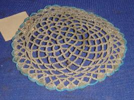 | Description / विवरण | Plate, made of wire, circular in shape, having designs with tiny beads of white and blue colours and semi precious stones. |