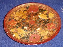 | Description / विवरण | A wooden plate having floral design on both sides while a circular depression is in the centre of the back side. |