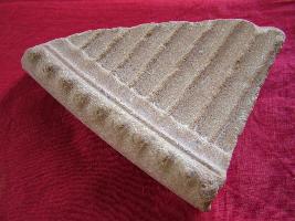 | Description / विवरण | This is a fragment of canopy made of sandstone which is having some curved vertical line. One surface of it is smooth with the help of Mauryan Polish. It is slightly curved shaped and triangular. |