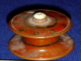 | Description / विवरण | Wooden chessman-Pawn white with flat and circular top and base and cylindrical body. The top has a small ivory fitting at the centre. It has been decorated with designs in scarlet, golden and black lacquer colour. |