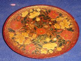 | Description / विवरण | A wooden plate having floral design on both sides while a circular depression is in the centre of the back side. |