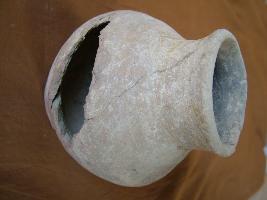 | Description / विवरण | It is a pot which is having globuler belly, circular, flat base. It is also having short straight neck. It is medium fabric and well fired and wheel made. On the outer surface incised horizontal line design are there. |