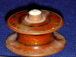 | Description / विवरण | Wooden chessman-Pawn white with decorated dome shaped top, cylindrical body and flat circular base. The top has a small ivory fitting at the centre. It has been decorated with designs in scarlet, golden and black lacquer colour. |