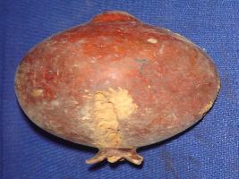 | Description / विवरण | Pomegranate, made of wood, painted in red colour. It is chipped off at some places. |