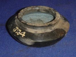 | Description / विवरण | Small pot, made of black stone, having flat circular base, round body, a sharp carination and striation marks all over the body. |