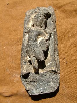 | Description / विवरण | It is carved with a male person. He is in Dwibhangia posture. Lower part of the figure is broken hands ear not clearly visible. |