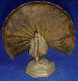 | Description / विवरण | Peacock made of brass in dancing position and standing on a octagonal pedestal. The details of feathers are incised. |