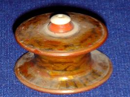 | Description / विवरण | Wooden chessman-black pawn, with circular top and base and a cylindrical body. The top has a small ivory fitting in the centre. It has been decorated with designs in golden, black and scarlet lacquer colours. |
