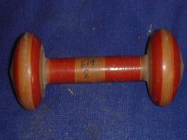 | Description / विवरण | Wooden rattler with two circular knobs a both ends, filled with grains to produce sound and the central part is a thin stick. |