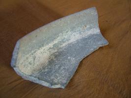| Description / विवरण | This is a fine fabric and well fired wheel made pot sherd. It has feature less incurve, long sided rim of gray ware. |