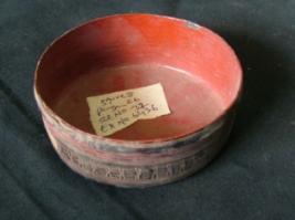| Description / विवरण | It is a small wooden bowl rakabi . It has lacquered work in concentric line form and red enamelled from inside. |