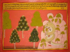 | Description / विवरण | Miniature painting based on Mahabharat - Vana parva depicting Raja Nahuk who is seen in the form of a large python on the painting. |