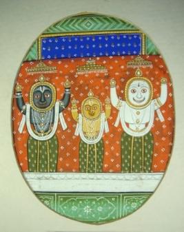| Description / विवरण | Miniature painting depicting Jagannath ji with Subhadra and Balram. |