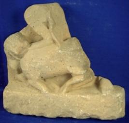| Description / विवरण | Fragment of the sculpture of Mahishasur mardini. Only the right leg kept on the back of buffalo demon Mahishasur , left foot, the tiger and headless body of the buffalo demon are there. The tiger is biting the butt of the buffalo. It is mutilated. |