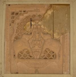 | Description / विवरण | An independent image of Gaj Lakshmi, seated in padmasana. She is four armed, two arms are folded and two arms are holding lotus. She is flanked by two elephants pouring water on her. The panel is elaborately carved. |