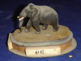 | Description / विवरण | Small wooden elephant of black colour on a black coloured base of oval shape. |