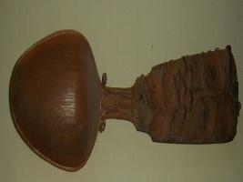 | Description / विवरण | Wooden spoon with a long handle having curving of floral designs on it. |