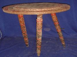 | Description / विवरण | A folding wooden stool having decorated three legs, while on top there are two platforms. The whole stool is decorated with floral designs in lacquer paint. |