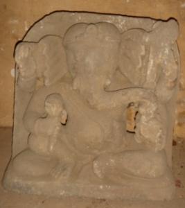 | Description / विवरण | An independent image of four armed Ganesh seated in Lalitasana. Attributes from right below i Lotus ii varada mudra iii Axe iv bowl of sweet. He is duly ornamental and wears Yajnopavit. |