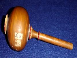 | Description / विवरण | A lacquered colour tinklet made of wood, circular shape, with a handle. |