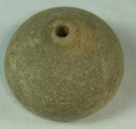 | Description / विवरण | Perforated terracotta bead having plain surface with incised lines near the base, betel nut in shape. |