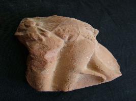 | Description / विवरण | This is a Terracotta female plaque only the lower part without feet is present. It is richly ornamented. Its legs are fixed, the genital part is clearly visible, it has a bangle in her hand. |